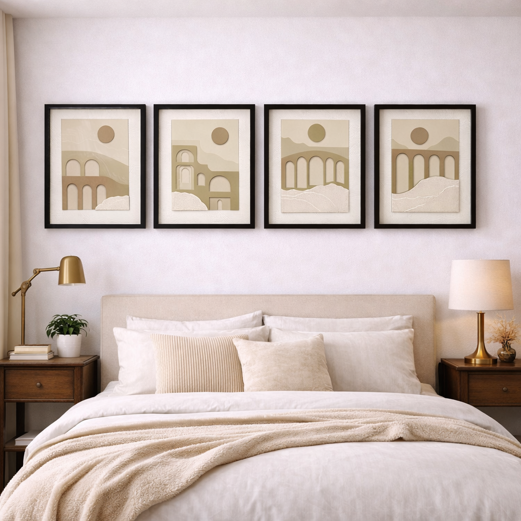 Abstract & Modern Architectural Landscape Wall Art – Glass Frame Decor (4 Piece Set)