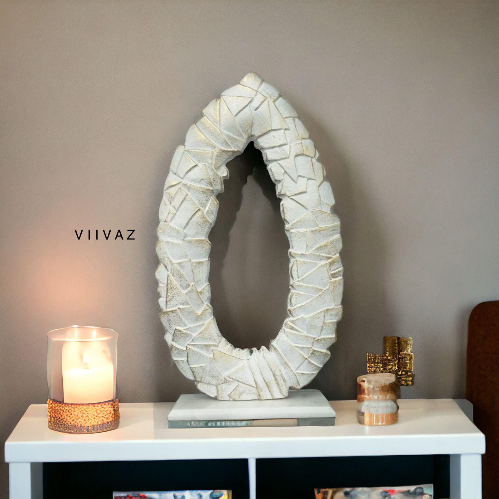 The sculpture's unique ring pattern adds a sense of depth and dimension to its overall composition. The use of negative space between the rings enhances the sculpture's lightness and transparency, creating an illusion of floating forms. The choice of materials is crucial in elevating the piece, with options ranging from sleek metals to warm woods, each contributing to the overall ambiance of the space. Whether placed in a minimalist, modern living room or a more eclectic setting, the Abstract Ring Pattern Sculpture effortlessly becomes a conversation starter and a testament to the fusion of art and design in contemporary decor.