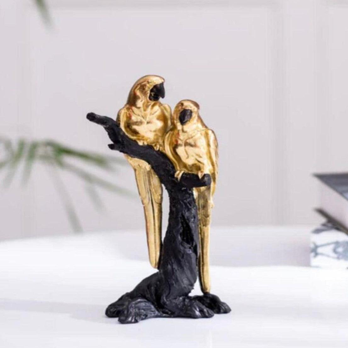 The exquisite showpiece captures the vibrant essence of nature with a stunning depiction of a parrot family perched on a majestic tree. The craftsmanship reveals intricate details, from the vivid plumage of the parrots to the textured bark of the tree, creating a lifelike and immersive scene. The parrot family, rendered in brilliant hues of green, red, and blue, radiates a sense of joy and camaraderie as they share the branches of their arboreal abode. Each parrot is meticulously crafted to showcase its unique features, and the dynamic arrangement of the family on different branches adds a sense of movement and liveliness to the piece.