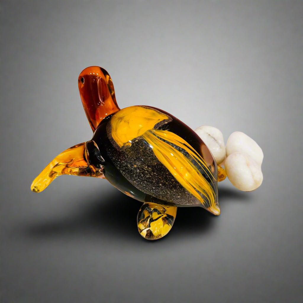 Murano Glass Tortoise Figurine Style 2 - Hand Blown Glass / H: 3.5 | L: 7 | W: 5 (Inches)
