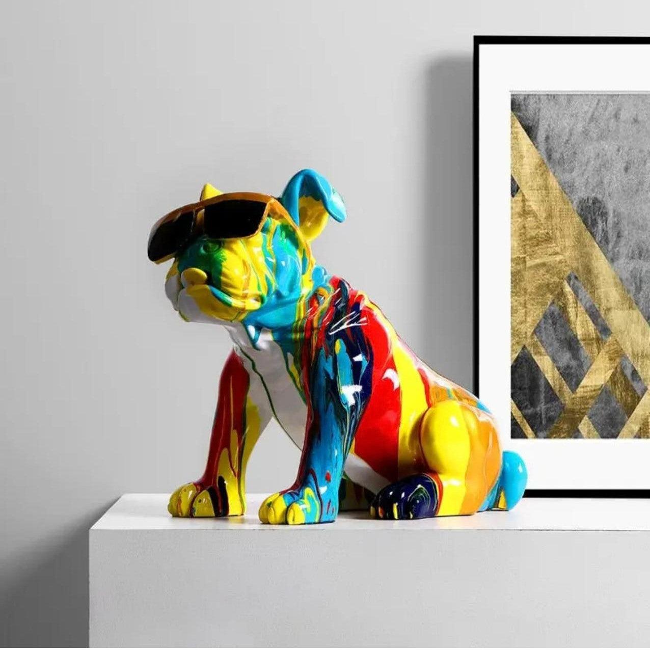 Introducing the charismatic Mr Hudson in House Bull Dog, a captivating decor piece that blends urban flair with a touch of whimsy. This charming bulldog, sporting sleek goggles, exudes a sense of adventure and style, making it a delightful conversation starter in any room. Its vibrant, multicolored design adds a contemporary edge, infusing spaces with a burst of energy and personality. Whether placed in a modern living room or a quirky office space, this piece is sure to capture hearts and evoke smiles, showcasing a perfect blend of urban chic and playful sophistication.