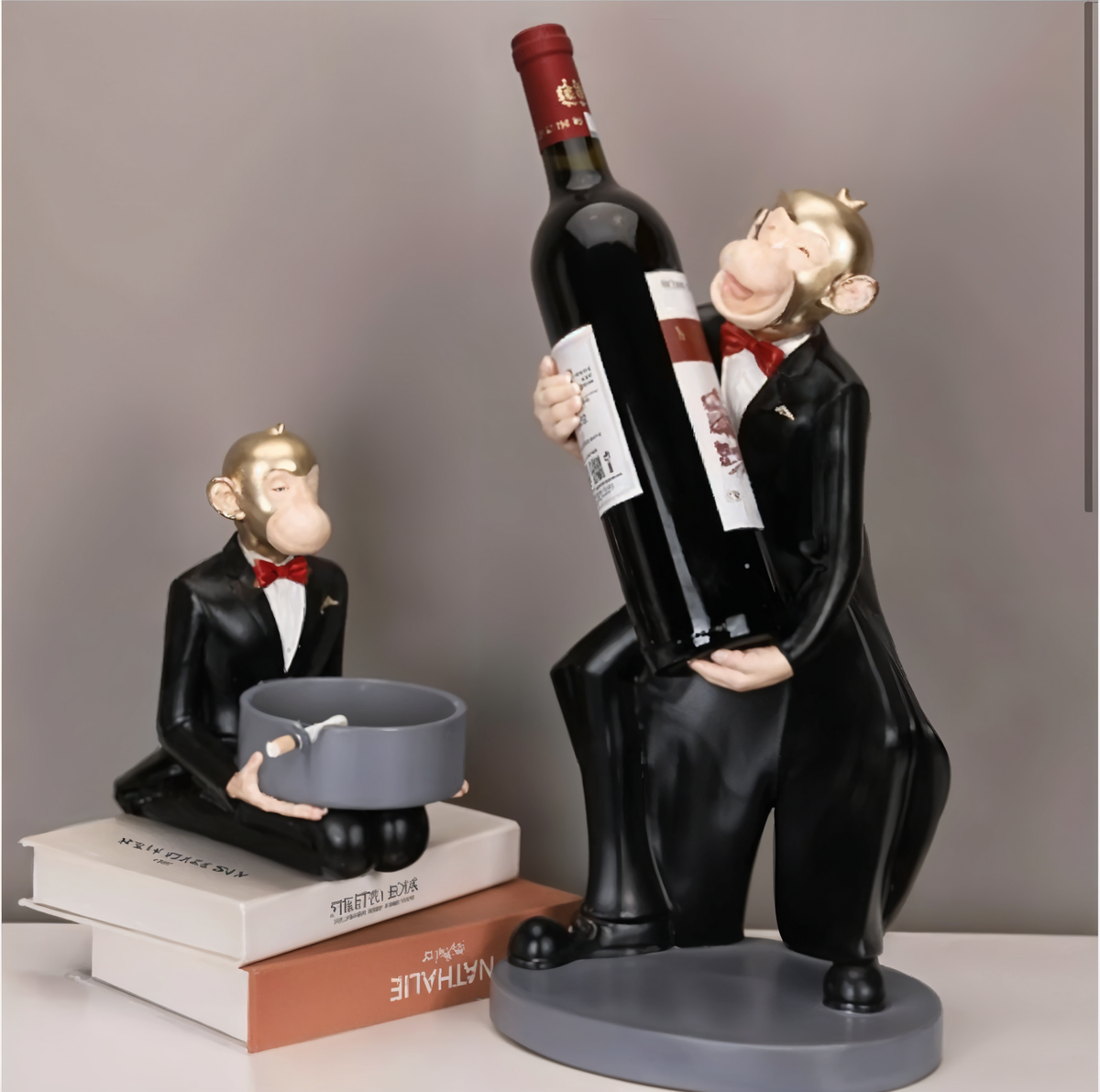 Monkey Tray Holder - Black Suit / Polyresin | Glossy Matt Finish / H: 8 | L: 8 | W: 6 (Inch)