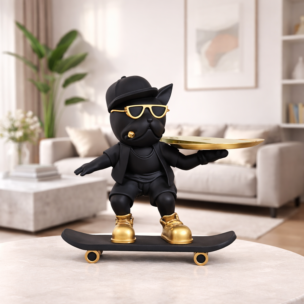 Mr. Charlie's presence adds a touch of whimsy and character to your surroundings. The meticulously sculpted details, from the wagging tail to the expressive eyes, create a lifelike and endearing figure that seems ready to spring into action. The tray he holds offers a functional purpose, making it an ideal spot for holding small items, such as keys, jewelry, or even a decorative accent.