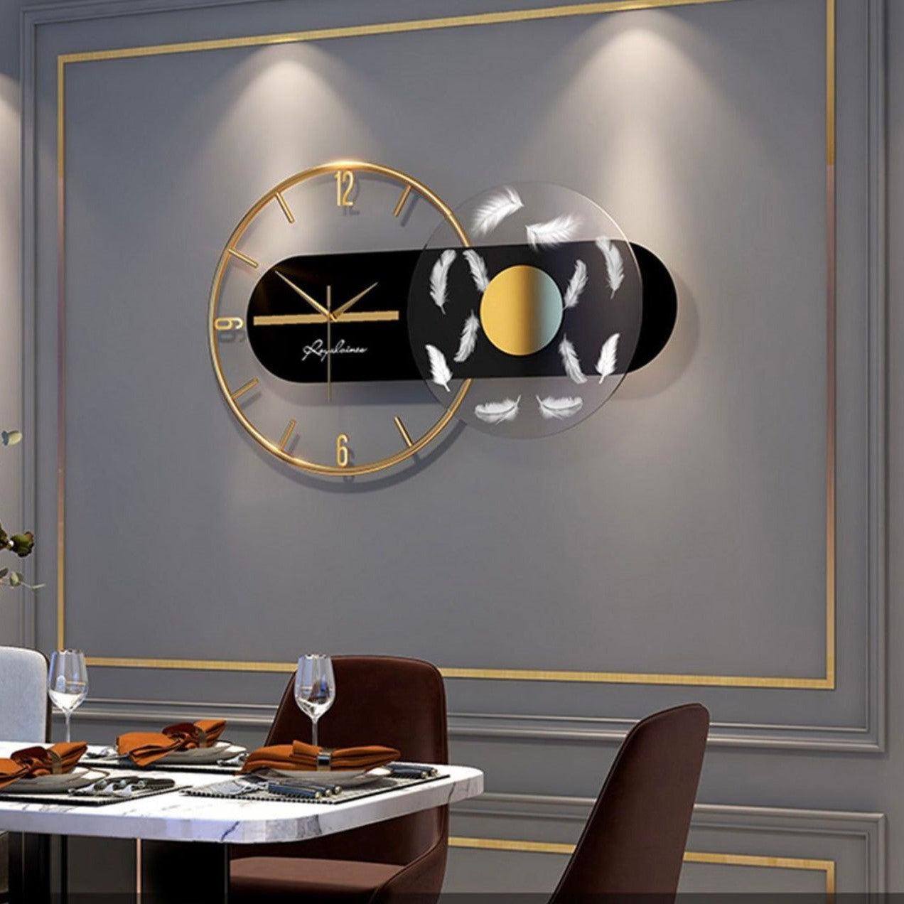 SERENITY OF FEATHER ART & METAL CLOCK - Feather Art & Clock / Metal | Matte Finish / H: 14 | L: 23.5 | W: 5 (Inch)