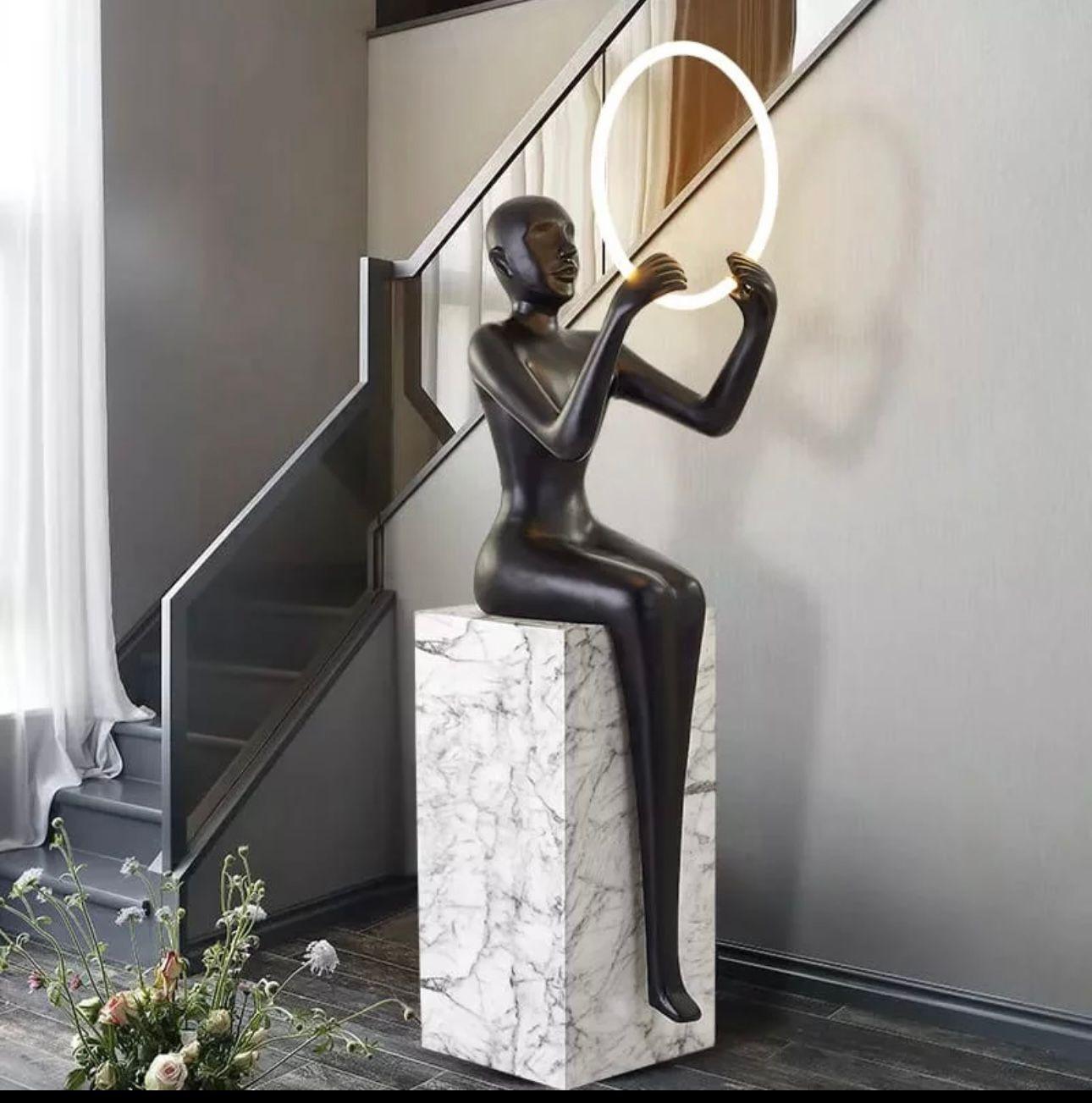 Crafted with meticulous attention to detail, the human sculpture component of this lamp is a true masterpiece. It captures the essence of the human form, showcasing the beauty of movement and grace. Whether used as a focal point in a living room, a conversation starter in a hallway, or an accent piece in a bedroom, this sculpture exudes a sense of timeless elegance.