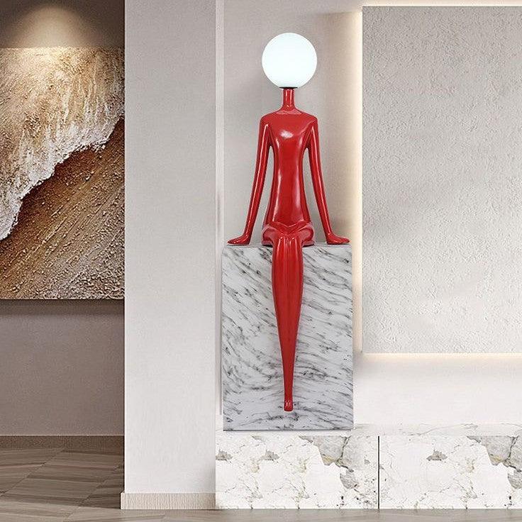 Ms Maria Humanoid Sculpture Floor Lamp - Sparkling Red / Polyresin | Metal | Acrylic / H: 65 | L: 20 | W: 16 (Inch)