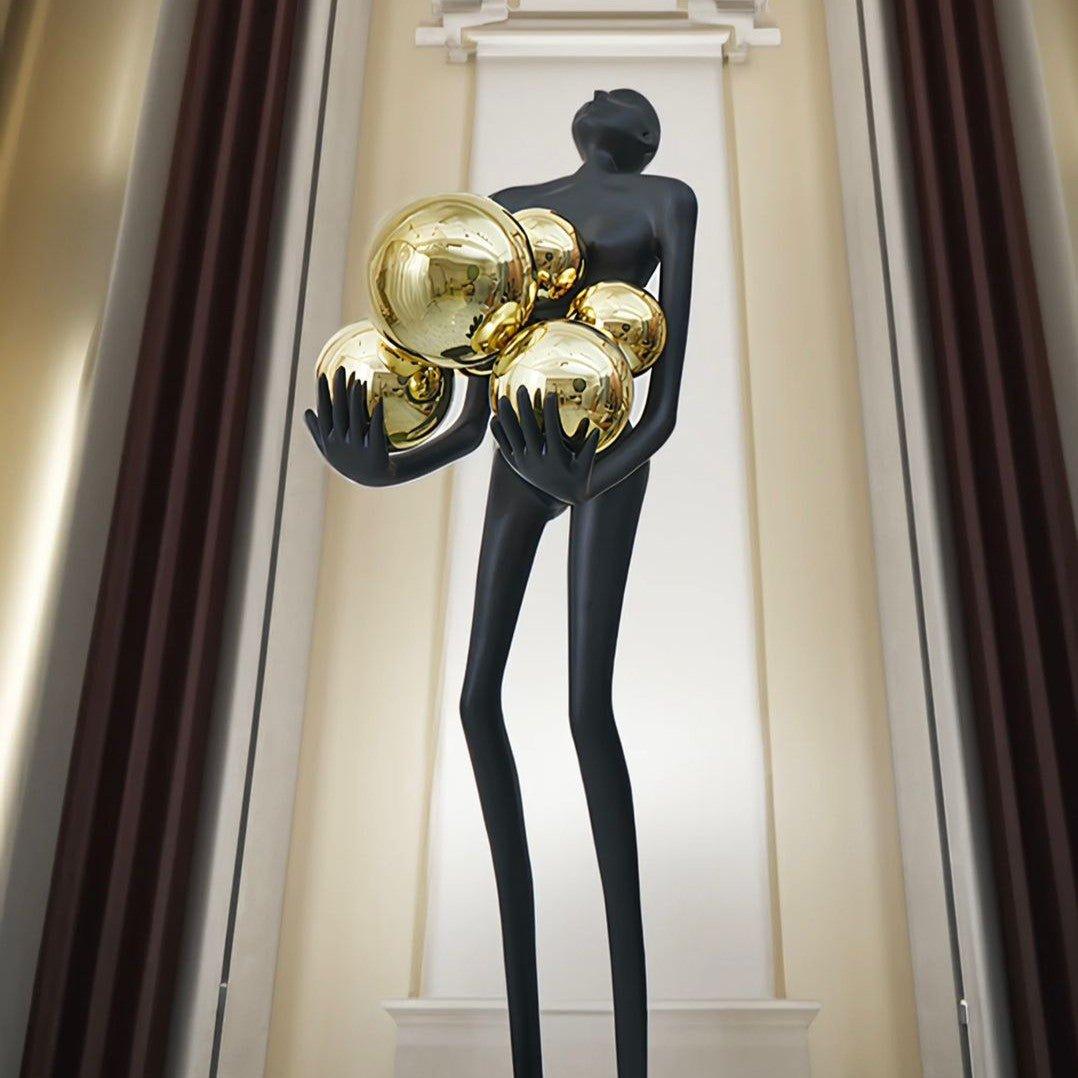 Humanoid Sculpture Floor Lamp Front - Golden Balls - Smokey Black / Polyresin | Metal | Acrylic / H: 72 | L: 18 | W: 15 (Inch)