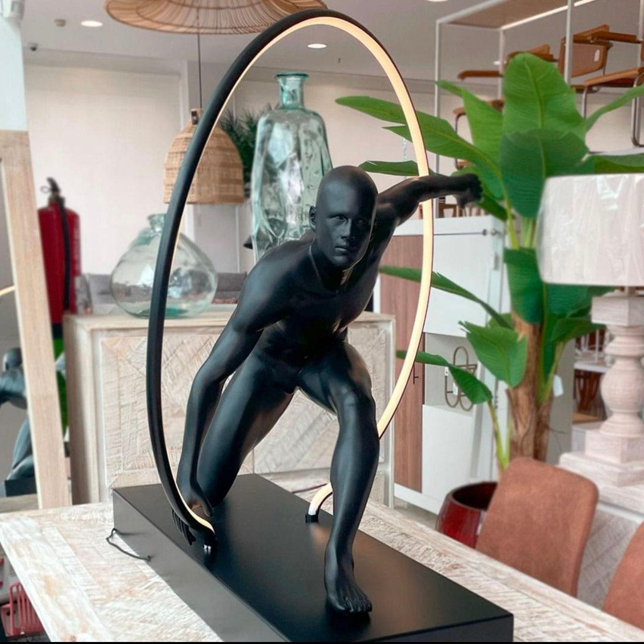 Crafted with meticulous attention to detail, the human sculpture component of this lamp is a true masterpiece. It captures the essence of the human form, showcasing the beauty of movement and grace. Whether used as a focal point in a living room, a conversation starter in a hallway, or an accent piece in a bedroom, this sculpture exudes a sense of timeless elegance.