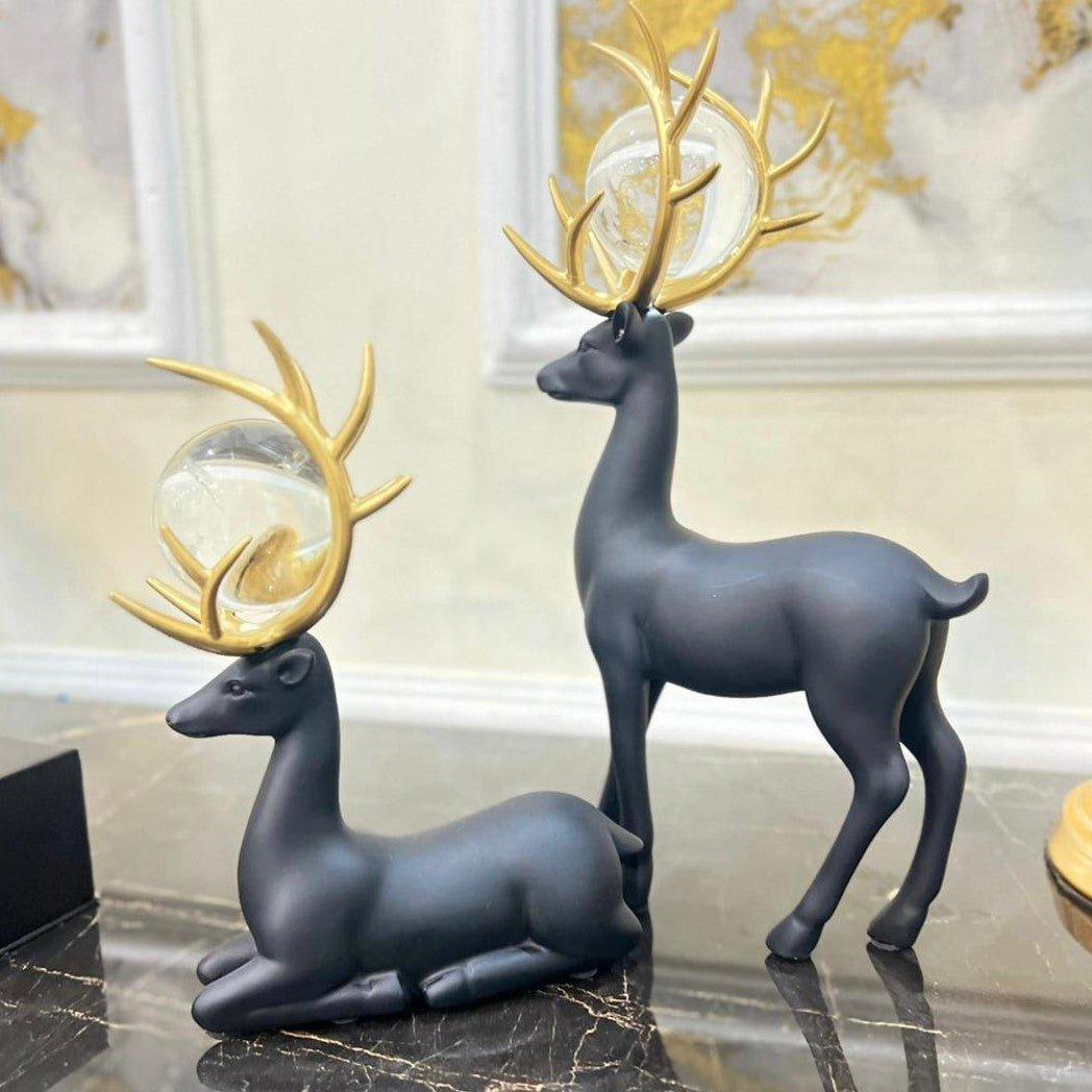 Crystal Reindeer Set of 2 - Black / Polyresin | Matt Gloss Finish / H: 9 | L: 5 | W: 2 / H: 6 | L: 6 | W: 1.5 (inch)