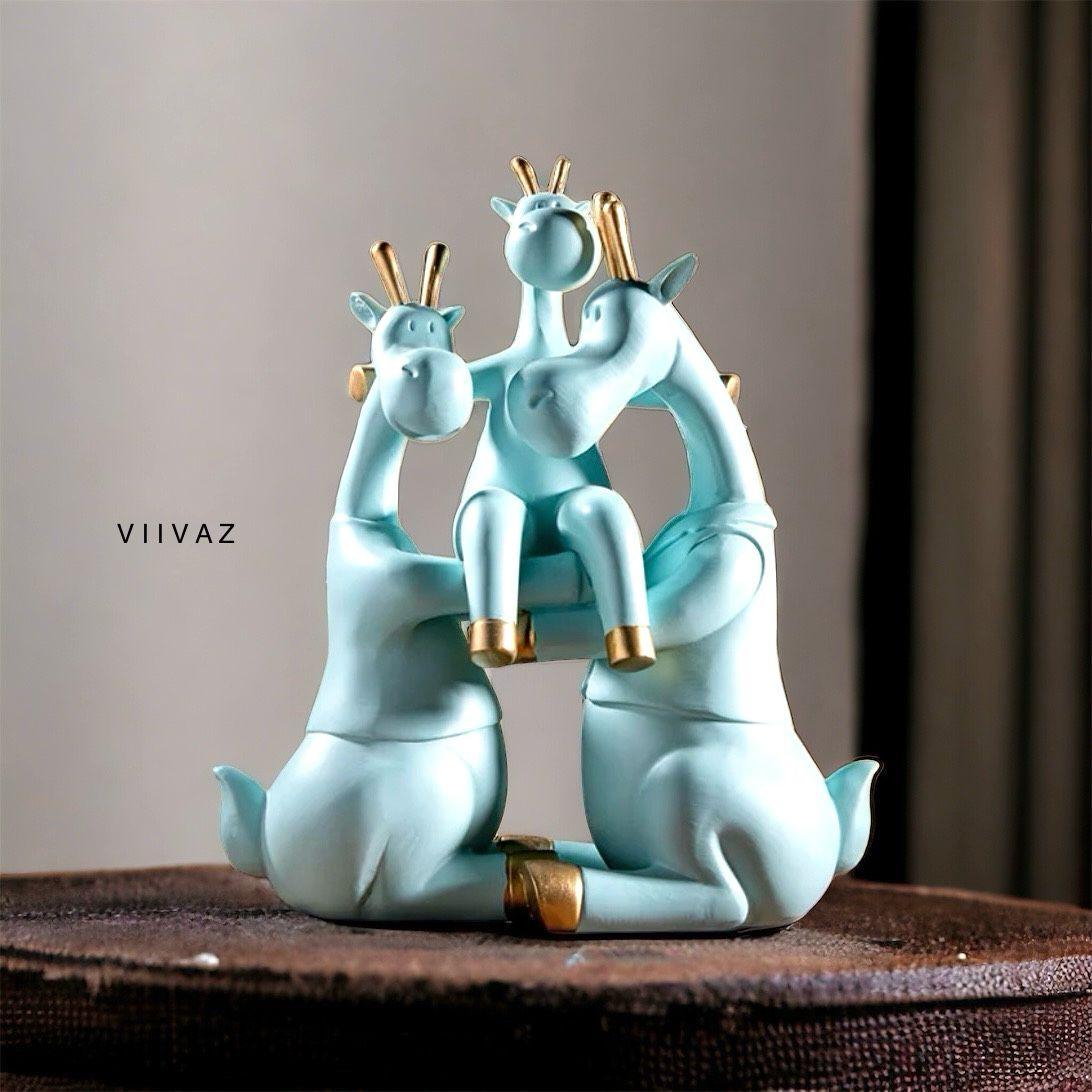 Giraffe Family - Bring their charm of close family - Smoky Blue / Polyresin | Gloss Finish / H: 12 Inch